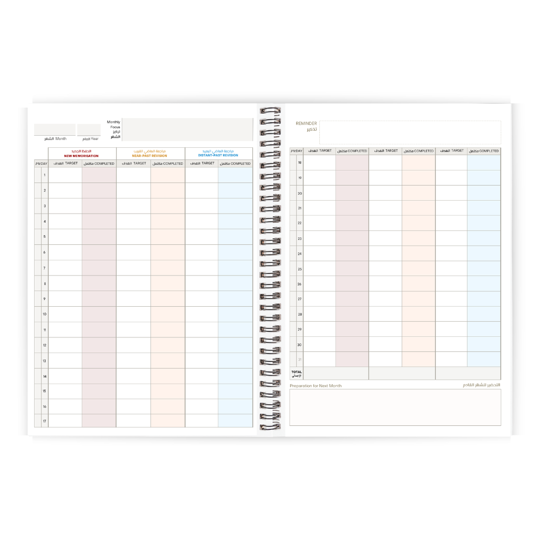 ✔ Space to record 2 full years of your Hifdh journey